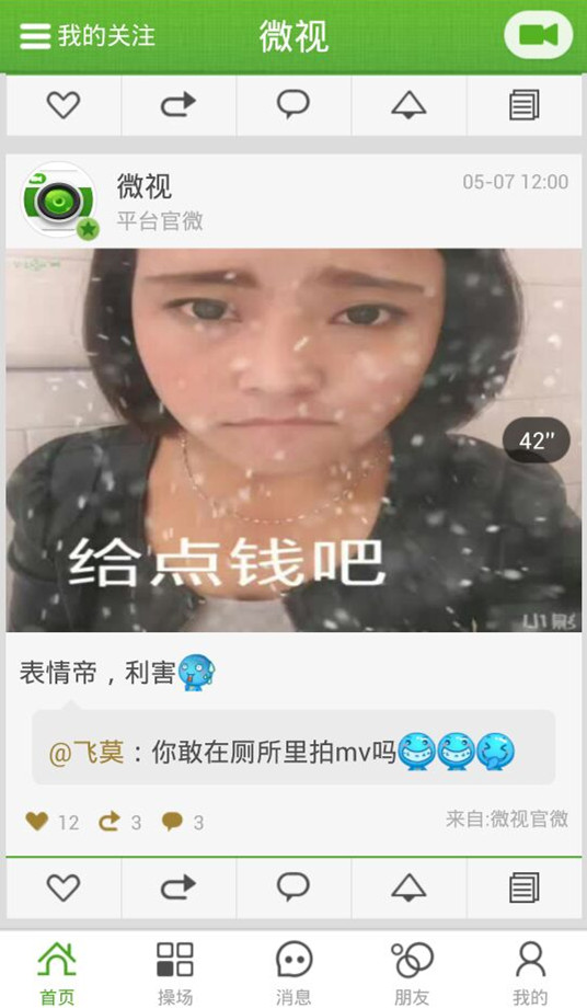 社区分享 微信、QQ、微博一键登录,轻松找好友; 视频一键分享到新浪微博、腾讯微博、微信好友和朋友圈。