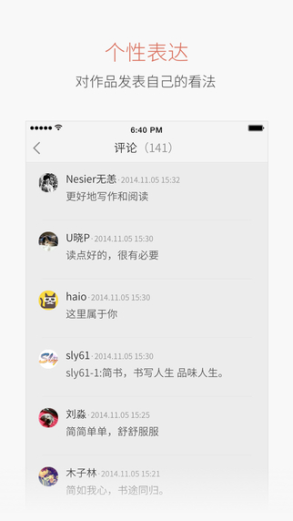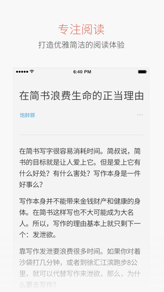 简书手机版是款写作与阅读交流平台,杂文小说诗歌新闻等。集结最优秀的创作者与文字爱好者,在嘈杂喧嚣的网络时代,重新沉淀并唤醒文字的力量。