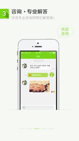 2、 用户可以与专业营养师进行减肥问题一对一咨询;
