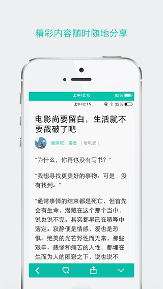 1、每日更新有趣内容; 2、遇到喜欢的内容可随时收藏; 3、支持分享到微信、微博等社交网络,精彩与好友一起分享; 4、支持豆瓣账号登录,云端保存数据永不丢失。