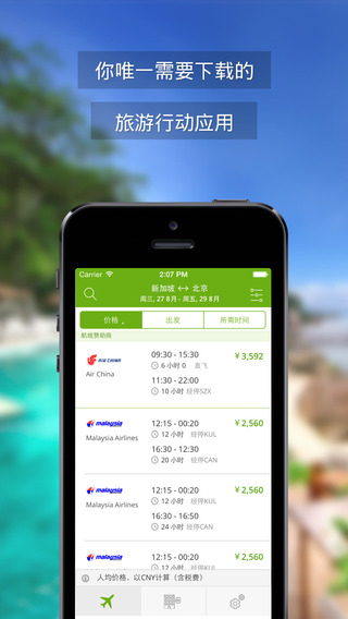 在一个应用内直接搜索机票和酒店