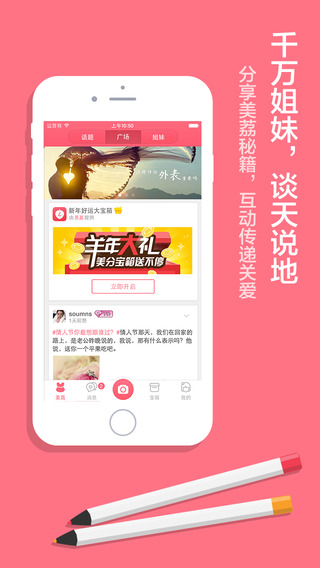 美容秘籍、护肤指南、穿衣搭配、美妆心得,统统可以晒给姐妹看。随时随地分享美丽秘籍,还能记录自己的变美过程。点赞回复多的好帖,分分钟热门置顶。美丽,就在美荔!