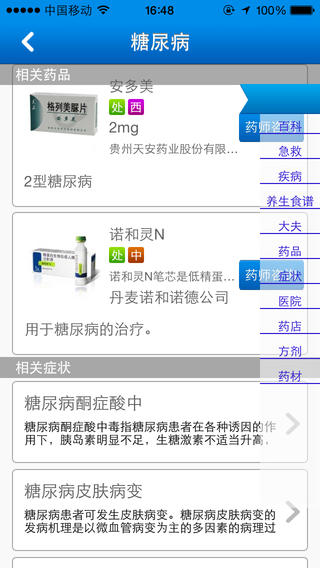 药品筛选是难题!“药品搜索”提供详细的海量药品说明,“中西药材”助您找到合适的药材。身体自检很必要!