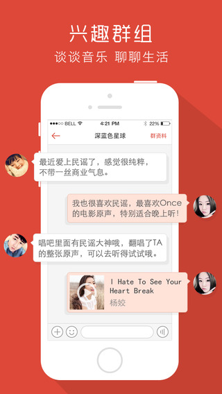 - 全国榜、地区榜、附近歌王、单曲排行、合唱排行,这里的舞台足够大好友互动:让欢乐在彼此间传递