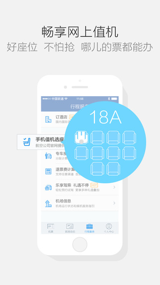 2、手机在线值机选座:通过手机值机预先占个心仪的座位 ,部分航空公司在航班开放值机前还可预订座位。
