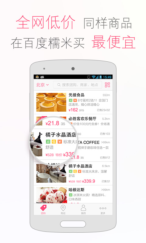 百度糯米客户端,最优惠的移动团购神器。1毛钱吃汉堡,低价买大牌,同样的商品在百度糯米买最便宜。评价还能得红包。