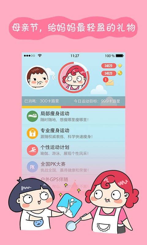 还有专业的GPS户外助手,随时记录胖妈运动的热量消耗;让妈妈在户外散步的时候有超级减肥王陪伴吧~
