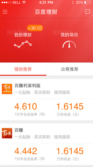 百度理财是百度公司推出的一款金融理财类手机软件,为用户精选了远超银行活期收益、极低风险、买卖便捷的金融理财产品,同时具备资产管理、收益查询、投钱、收钱等便捷功能,从此无需在银行营业网点排队,甚至不用在电脑前操作,就能像浏览新闻一样,利用午休、通勤等碎片化时间,随时随地,方便快捷地实现自身的财富增值。