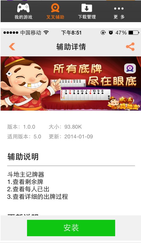 《欢乐斗地主》ios记牌器发布,请先安装最新版本的叉叉助手