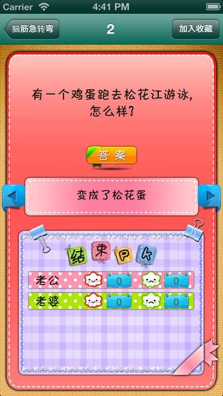 脑筋急转弯怎么玩?什么,还在自己偷着乐!你out了,现在都pk拉!脑筋急转10000弯的二代产品,隆重推出pk加强版。情侣/夫妻/家人 一起比赛吧。