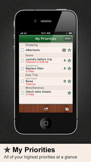 扔掉你的笔和纸,因为随着婚姻生活,你需要的一切简直是在你的指尖。通过你的页面待办事项快速扫描的手指触摸,并添加新的待办事项与易用性的单一按钮。从右侧的Add添加屏幕提示,到期日期,到期时间和注意事项。创建并保存模板,再而三地使用。使用同步功能来备份您的数据,并与家人,朋友或同事分享的网页。转到我的,priorities.com网站编辑您在网络上的网页和任务。婚姻生活是一个必须具备的人谁愿意留下来组织!