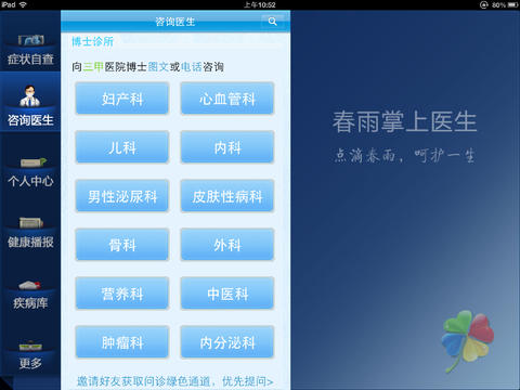 春雨掌上医生是一款“自查+问诊”的健康咨询类手机客户端;
