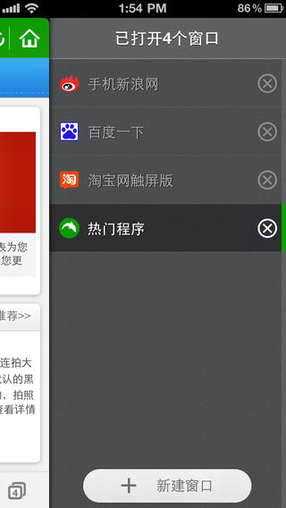 轻滑出左侧边栏,这里有你喜爱的书签,轻滑右侧边栏,管理打开的多个窗口。