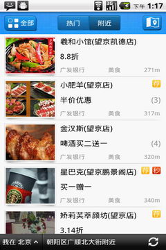 * 附近:探索身边的美好,通过手机定位搜索周边吃喝玩乐商家,提供商户电话、地址地图、客观点评信息;