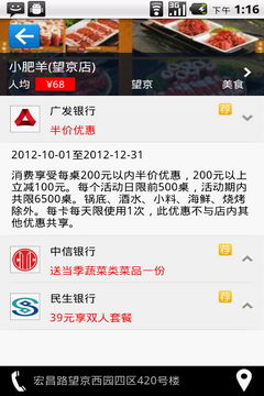* 优惠:尽情的享受生活,全国15家主流银行,100个城市超过510000家信用卡品牌商户的详尽时尚消费指南,增加商户团购优惠;