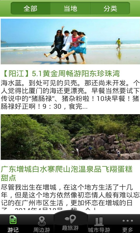 趣旅游--国内首款旅游休闲LBS手机应用,是一款好用的旅游App手机旅行软件,涵盖当季游、周边游、旅游攻略、城市导游、当季游、美食攻略、精彩游记等实用信息,是您外出行旅游的必备手机旅行应用。