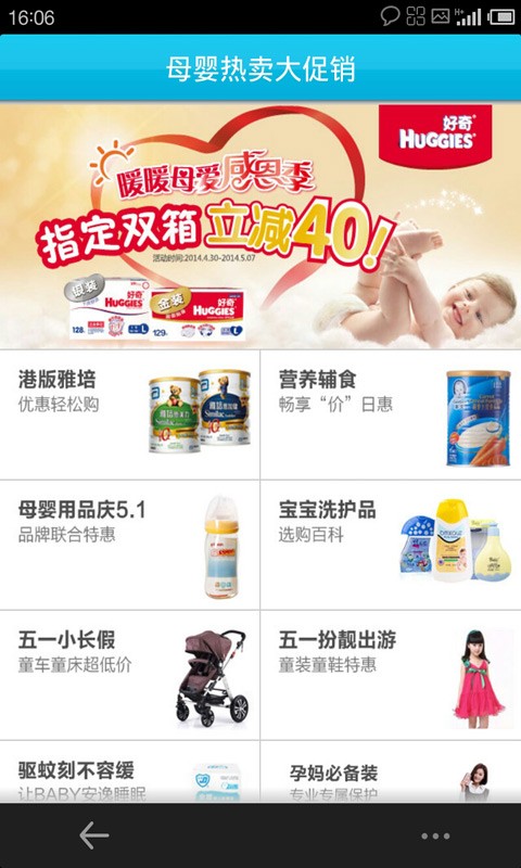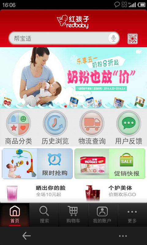 1、促销活动 限时抢购、热门单品、新品上架、品牌推荐、促销专题、妈妈专区、宝宝专区,更多活动,更多惊喜!