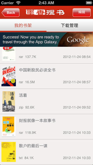 2.专业图书下载管理,支持断点续传,下载完成后自动进入书架;