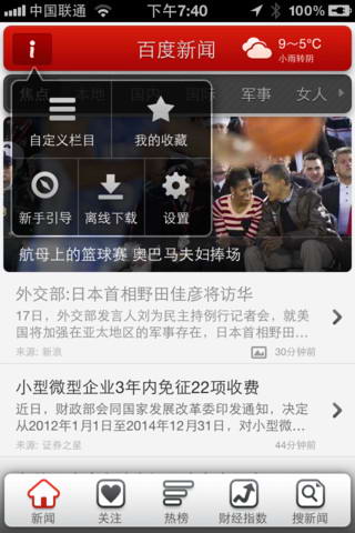 百度新闻,满足用户在碎片时间内,轻松愉快的阅读需求。 涵盖了新闻、资讯、美女、图片、笑话、博客、社区等8000+种内容来源。 用户可以根据自己的兴趣选择内容类别,打造自己专属的阅读空间。 更有精准“个性化推荐”技术,用得越多,百度新闻越懂你!