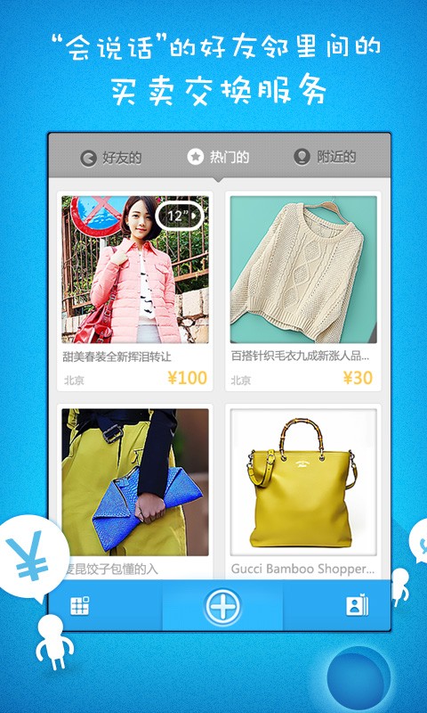 小交易,“会说话”的好友邻里买卖交换服务。 就是这么简单,拍张照,说句话,买卖、交换分分钟轻松搞定~ 这里有朋友自己的闲置,有邻里的亲口描述,靠谱无需犹豫~ 你求,我有,小交易一下,TA就是你的了~ 陌生人交易保障计划让交易刚放心~ 快捷发布、迅速变现、真实内容,最棒的好友邻里买卖交换服务~