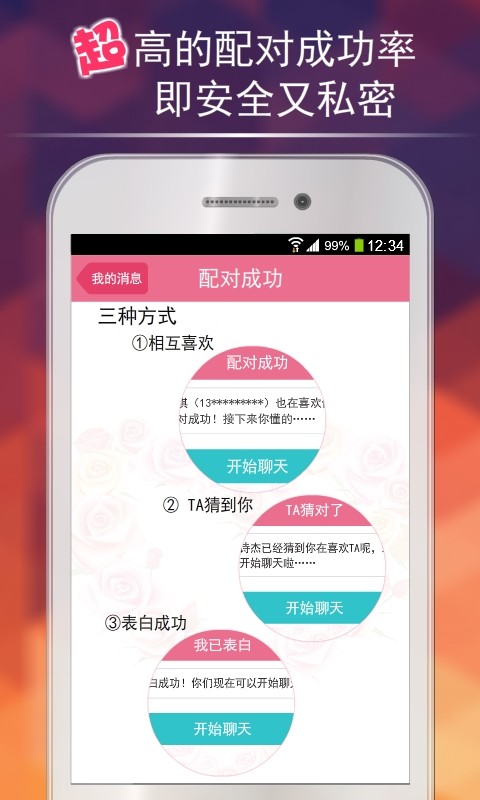 配对成功率非常高哦~!也许你喜欢的TA,也正在悄悄喜欢你。不要错过,祝你成功!