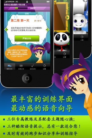 •三种教练提示声可选 – 琳达、盼达和尤达,分别代表三种不同的教练风格,贴身陪你完成每次训练。教练的指导声音将会全程贯穿在您的每一次训练中,实时提醒您的训练内容和进度,鼓励并督促您顺利完成训练,针对不同教练同时配有专门设计的主题背景;