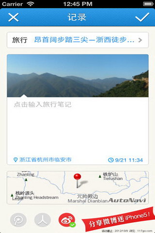 旅程直播:可同时向您的新浪微博、人人网等朋友社区实时分享直播精彩旅程;