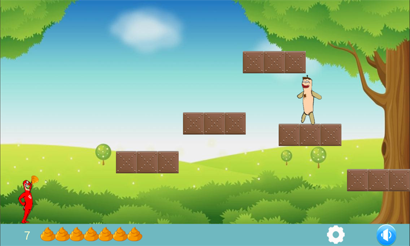 大便大战是一款非常适合小孩子玩的游戏,它的操作十分简单,只需要按住屏幕调整手臂角度松开以后掷出大便就可以了。它是由一个像咸蛋超人的人偶来掷出大便来击倒示威的怪兽,通过逐渐掷出大便将怪兽一一打倒,要记住的是大便的数量是有限的,确保每一个大便都能击倒一个怪兽人偶,这很考验你掷出的角度,高的击倒率,过关的机率就越高。关数越高越刺激喔!等你来闯关,精彩的游戏等你玩。