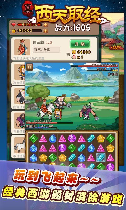真西天取经是一款经典的西游题材消除游戏,通过唐僧师徒4人西天取经的成长故事与三消游戏模式相结合,创造出简单有趣变换无穷的玩法。