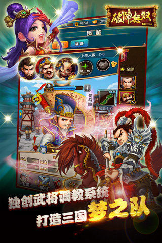 全民策略战棋手游。运筹帷幄,出“棋”制胜! 《破阵无双》是一款以三国故事为背景的策略战棋类卡牌手游并且结合了SLG和塔防推家的多种玩法,玩家可以收集到百名三国名将加入麾下陪伴主公一统天下。