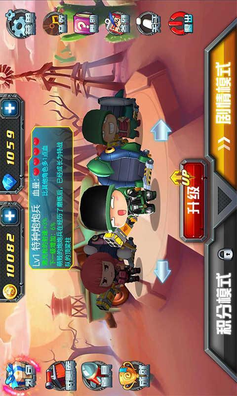 《炮炮兵特战队》是一款好玩的射击类游戏,游戏采用正版表情IP《炮炮兵》的角色原画设计,精心打造枪战射击玩法;在传统射击上简化操作,增强指尖的爽快点,让你体会到不一样的乐趣!在游戏中化身炮炮兵战士,使用特色武器与敌方斗智斗勇。精致绚丽的画面,Q萌逗趣的炮炮兵造型;让人既能回味经典,又能感受畅爽战斗的乐趣。