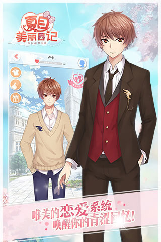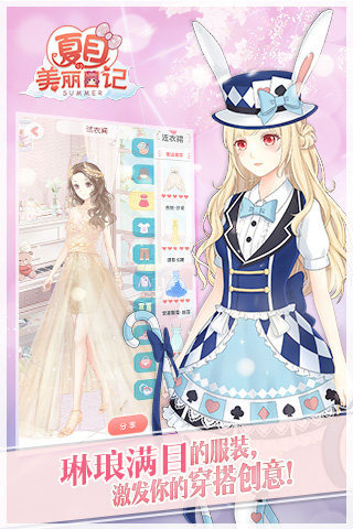 年度换装恋爱走心之作——《夏目的美丽日记》!百变妆容、万套美衣,许你一场梦幻。顶尖画师数万小时精美立绘,每一笔都是故事;精心考究的数千套服饰,每一件都是宠爱。各路男神、从古自今,与你携手并肩,横跨宇宙,穿越时间。傲娇正太、居家暖男、霸道仙师、病娇王子等各类男神,等你点亮他的生命。如果你不回他们的短信,贴心的男神,可能因为吃醋秒变男神经哦!为万千女性玩家量身定做,你值得被疼爱。
