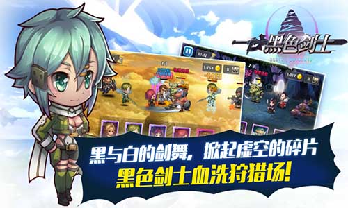 黑色剑士是一款由动漫《刀剑神域》改编而来的卡牌手游。100%原画、技能、BGM组合直击动漫世界,多重配合小队战斗模式,全新公会大战一触即发;完美养成,超高颜值女神尽收其中;酷炫必杀英雄为爱而战!非常不错的错了卡牌对战手游,精致的画面,简单流畅的操作,你需要控制游戏中的人物完成任务,惊险刺激的剧情发展,游戏角色完全还原原著,还有丰富的奖励系统哦