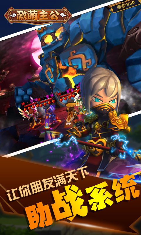 萌版人物设计的三国题材游戏,以穿越向的冒险剧情为主线,加入大量吐槽系对白,诙谐幽默娱乐不停,三国武将各种呆萌,还有软系的三国妹子可以领回家哦!副本系统、帮会系统及帮战、BOSS战、千层塔、助战系统、装备系统、武将羁绊等应有尽有哦!