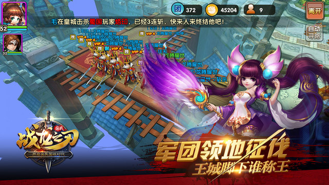 4K顶尖级游戏画质,满屏炫酷特效,最强打击动作手游,酣畅淋漓的皇城PK、激烈畅快的万人国战、真人MOBA,热血争霸激情无限,将满足您的一切战斗想象!