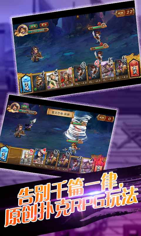 首款扑克玩法RPG手游《扑杀三国》来袭!创新性地将扑克玩法植入到三国题材RPG手游中,让玩家体验不一样的策略玩法!精美画面、霸气武将,每张精美卡牌都让人眼前一亮!军师系统、追击战、名将试炼,每种创新玩法都让人耳目一新!扑克放必杀,非常战斗,非常三国!赶快来体验!