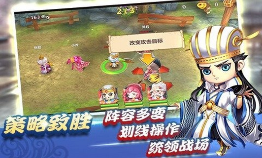 游戏以养成为主,收集为辅,提供众多养成方式供您选择,武将获取途径更多更容易。独特武将轮回变身,一骑当千英雄模式,策略布阵、即时战斗换位,清新Q版画风,真3D视角展示,带您畅游不一样的三国历史。