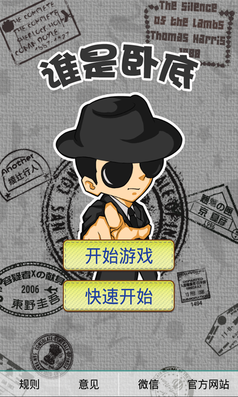 不仅支持快乐大本营的规则,而且对白板的规则进行了增强,并创新提出了类似三国杀的玩法,适合大家聚会时一起来玩。游戏有三种角色,卧底、白板和平民。卧底、白板和平民首先需要抽签获取各自的身份词,卧底和平民的身份词相似但不相同(例如“桌子”和“椅子”),白板没有身份词,通过猜测其它 玩家的身份词进行游戏。
