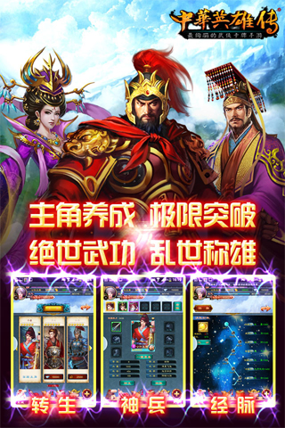 《中华英雄传》是一款历史武侠RPG卡牌手游,游戏以隋末乱世为背景,半写实画风的豪杰美人们‘侠’味儿十足,玩点设计上充分考虑碎片时间的利用,使玩家可以更轻松的享受游戏乐趣。精致唯美的画面,丰富多彩的系统,轻重得宜的玩法,邀您体验最极致的手游盛宴。