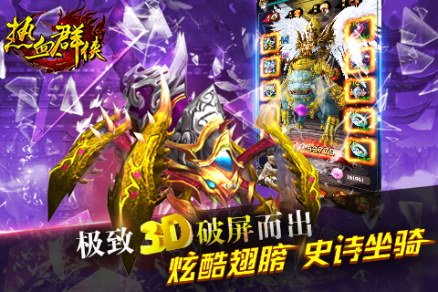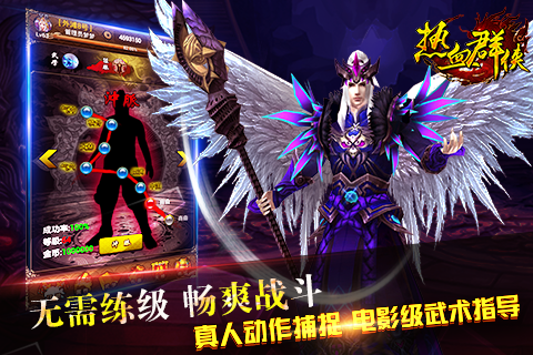 《热血群侠》全武林首款能约聊的3D挂机2.0手游。高清3D画面,带你告别挂机1.0的纸片人时代;超小客户端,10秒即可下载完成。独创的游戏内置豪华约聊系统,让你随时与女神们亲密互动,随时约会约聊约团战。相比传统的挂机1.0手游,《热血群侠》增加了坐骑、冲脉、武学、装备进阶等全新玩法,更有令人热血喷张的世界BOSS和团战玩法。智能托管系统,帮你节省流量,简单设置即可轻松上手,保你飞速练级。"