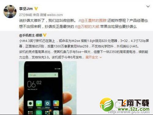 一直以苹果为标榜的小米,似乎有意效仿苹果,推出一款小屏旗舰手机。今天,有网友就爆出了小米新机——小米2se。