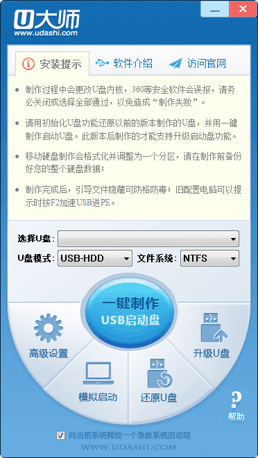 u大师u盘启动盘制作工具是时下最流、便捷的u盘装系统和维护电脑的专用工具,无论是电脑菜鸟级别还是专家级别都能轻松使用。