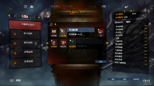 既然是继承自同旗下的端游九阴,那么在端游中的养成元素自然是少不了的。游戏中,英雄有心法和经脉的设定。经脉通过开通提升属性值,来略微强化英雄的能力。在打通经脉的穴位以后,会出现多项可升级选项,从外功防御到攻击不等。系统会根据所选英雄的定位,重点标示出符合角色自身定位的穴位属性。心法则类似,通过游戏或者商城购买的方式解锁,用以提升6大属性。