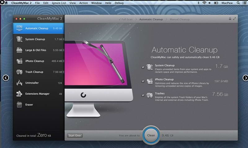 CleanMyMac是一款先进的、集所有功能于一身的实用系统清理工具,它能帮助保持您的Mac保持清洁。只需两个简单的点击,就可以删除无用的文件,以节省您宝贵的磁盘空间。