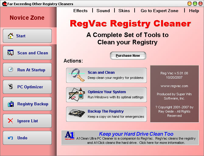 注册表吸尘器 RegVac,是一个专门清理注册表的多功能管理工具,内含8种主要工具:Classes Vac、Stash Vac、Software Vac、File Lists Vac、Add/Remove Editor、System Configuration Utility、OpenWith Editor、Bad FileName Finder,你可以利用这些选项对注册表文件作一次全身心地清洁。RegVac没有太多的选项,也没有复杂的设置, 操作界面也很直观,瞬间即可轻松上手。