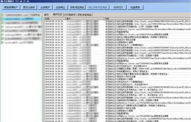 软件背景微博营销是近几年刚刚兴起的网络营销方式,随着微博的火热,凭借其门槛低、成本小的优点,越来越多的企事业或个人在新浪、腾讯等微博平台开设微博宣传品牌、推广产品或服务等其它活动。 但对于一个新开的微博,如何被更多人关注是一个根本性的问题,对于没有特别宣传渠道或资源的微博,先关注别人以求被关注也许是唯一的“笨办法”,然而,每天重复性的加关注、删关注可不是人干的活,贝贝微助手就源于这样的需求,把重复性的工作交给“她”来做,而您可以把时间花在更有价值的工作上。
