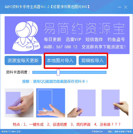 QQPC资料卡手持生成器是一款方便易易用的QQ资料卡生成软件,这款qq资料卡生成器——QQPC资料卡手持生成器工具为绿色版本,它可以帮助您轻松生成手持的透明QQ资料卡。
