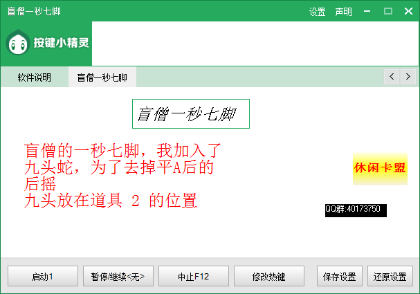 此脚本加入了九头蛇,主要是为了去掉平A后的后摇,九头蛇放在道具2的位置,游戏中按数字键[1]即可启动盲僧一秒7脚(当然,你还是可以自定义按键的)