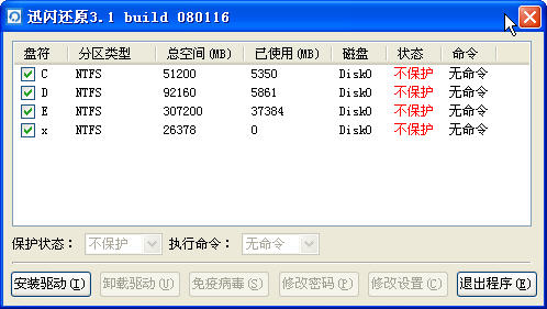 1、如果你安装的是迅闪还原V3.1 (1023)的版本,请直接覆盖或更新压缩包中的RecoverSetup.exe文件,然后重启免疫一次,免疫方法有手工免疫和命令行免疫。