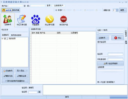 6、可以成百上千的管理百度帐号,可以自动留言评论网盘地址,在留言中可以带广告信息;
